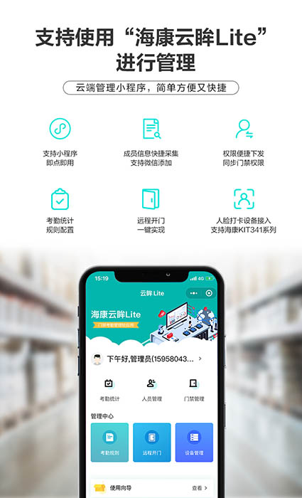 9) 支持海康威視iVMS-4200AC客戶端軟件,兼容考勤門禁管理功能。