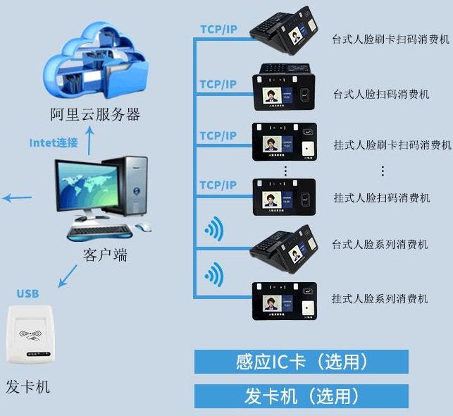 人臉識別迅速準確,無需攜帶卡片,系統功能豐富,消費系統、充值系統、補助系統等一應俱全;