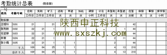 中控指紋考勤機報表樣表